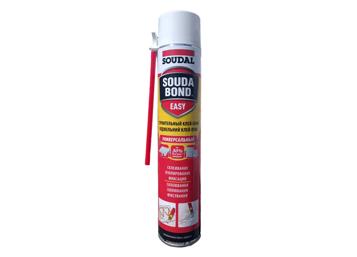 Клей пена Soudal Soudabond - это быстросохнущий полиуретановый клей в аэрозоле с высокой производительностью для крепления пенополистрирола, пенопласта, гипсокартонных плит и др. материалов внутри и снаружи помещений.
